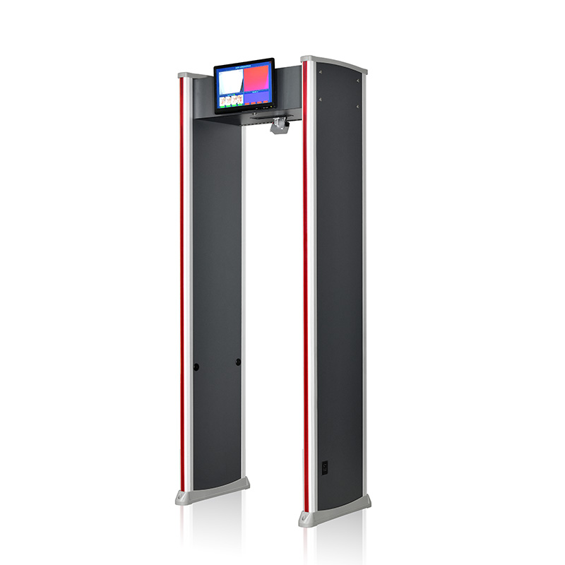 無感熱成像安檢門采用新型無感高端紅外 (IR)傳感器,快速測溫系統,由測溫智能攝像機和熱成像篩查 系統軟件組成,并與金屬探測為一體的安全檢測門,門頭裝有高精準度的執成像體溫檢測探頭,快速感應通過人群是 否體溫異常,預防疾病傳播;測溫后通門門體能快速感應行人是否攜帶金屬物品,防止刀具、槍支等危險品混入, 具有探測準、靈敏度高、抗干擾強的特點的安全檢查,廣泛應用于適用于機場,車站,出入境檢查站,等人員密集 場所。是防止疫情擴散的有效手段。
